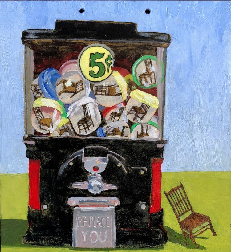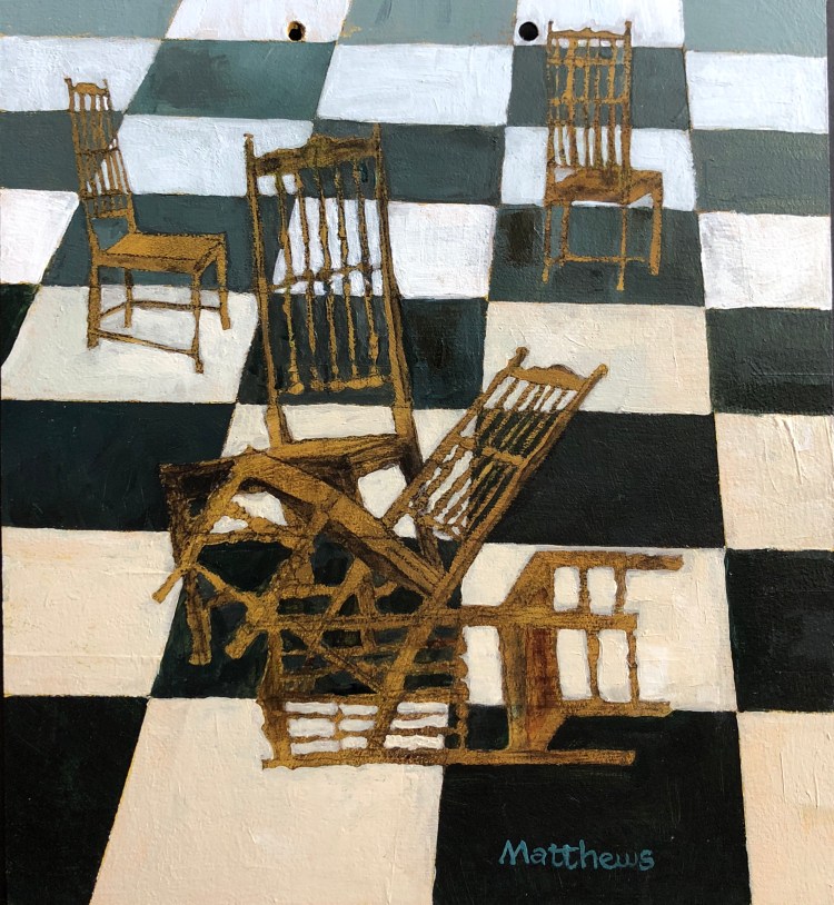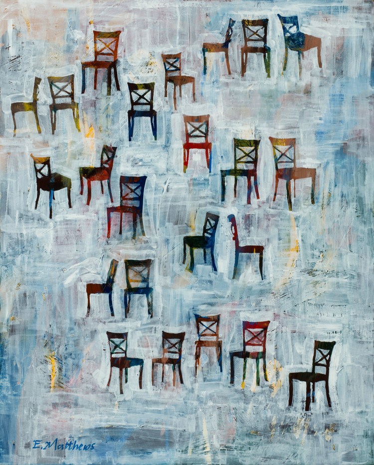 In these works an empty chair symbolizes an invitation, or a record that an invitation wasn’t accepted. An empty chair can also represent someone who was here and is now missing. I use the empty chair to explore rich human themes that are under examined such as domestic violence, and parental alienation as well as humor and enlightenment.