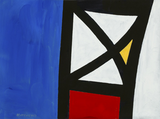 In this artwork the story being told lacks authentication. This is symbolized by the blank color shapes representing a missing Chinese chop or seal that is traditionally used to verify and validate authenticity of a work.